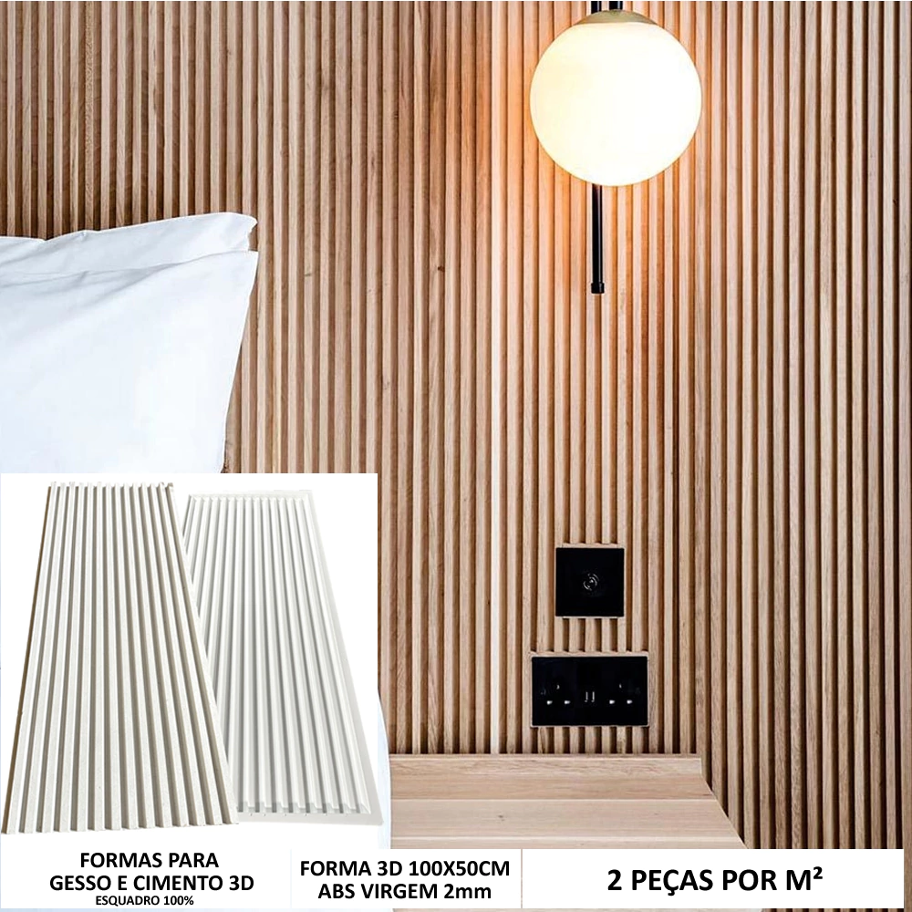 Forma Molde Gesso 3D Ripado 100x50 em ABS Virgem Gesso E Cimenticio 3D IN516