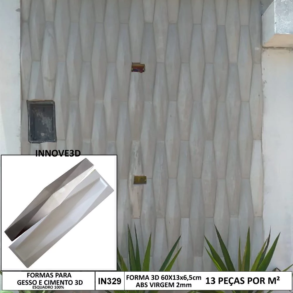 1 Forma Gesso 3D em ABS Virgem Gesso E Cimenticio 3D Origami Invertido IN204 60x6,5x13cm