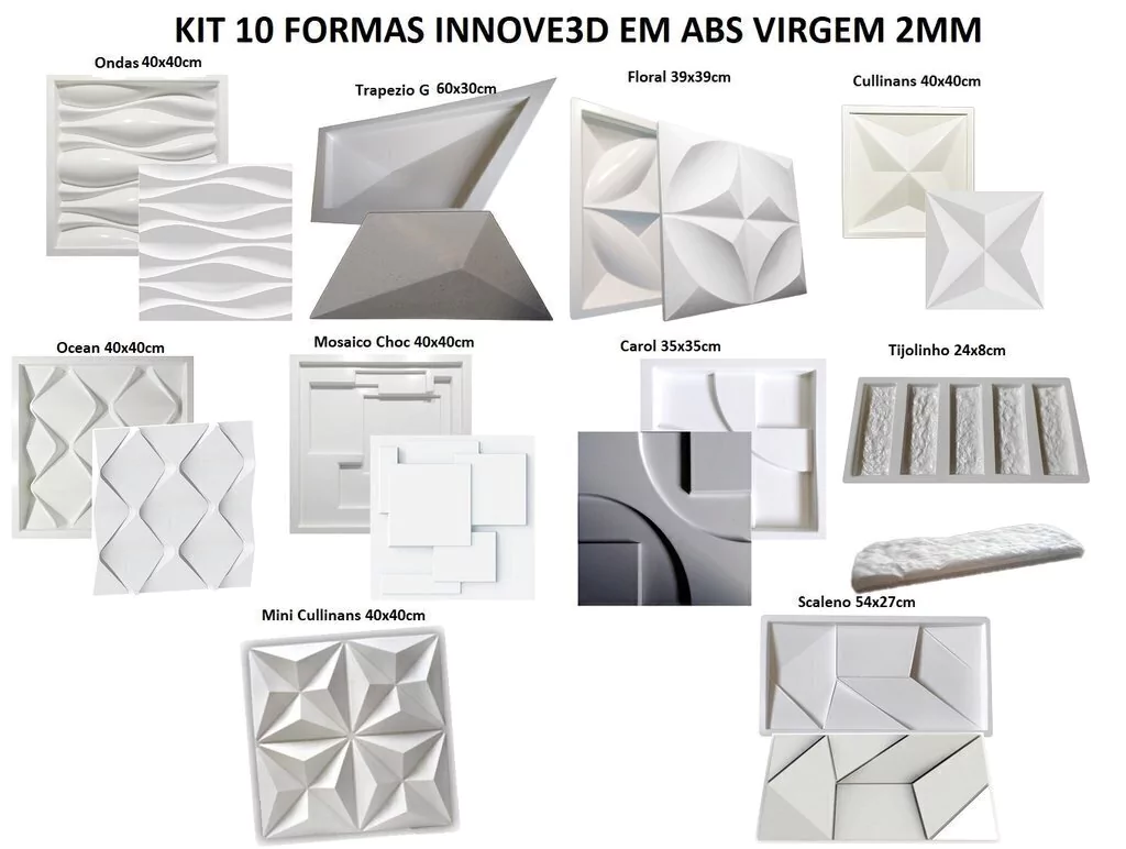 Kit 10 Formas Moldes Para Gesso 3D em ABS Virgem 2mm Gesso E Cimento 3d