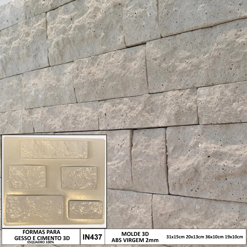 Forma Gesso 3D em ABS Virgem Gesso E Cimenticio 3d Tijolinho Rustico Tipo Travertino Roma IN437